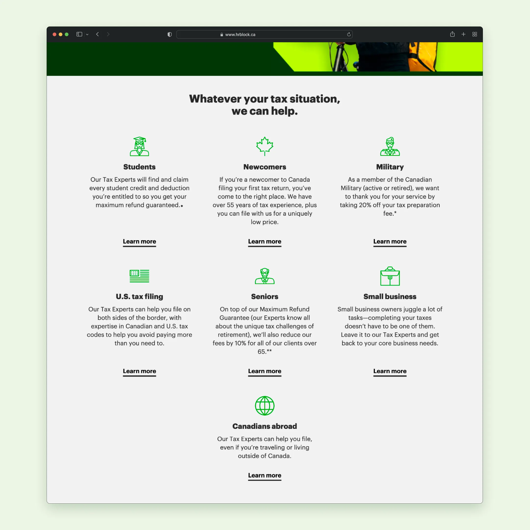 A dedicated space for information about H&R Block Canada as an organization, including its mission, history, and leadership, providing users with greater context and trust.