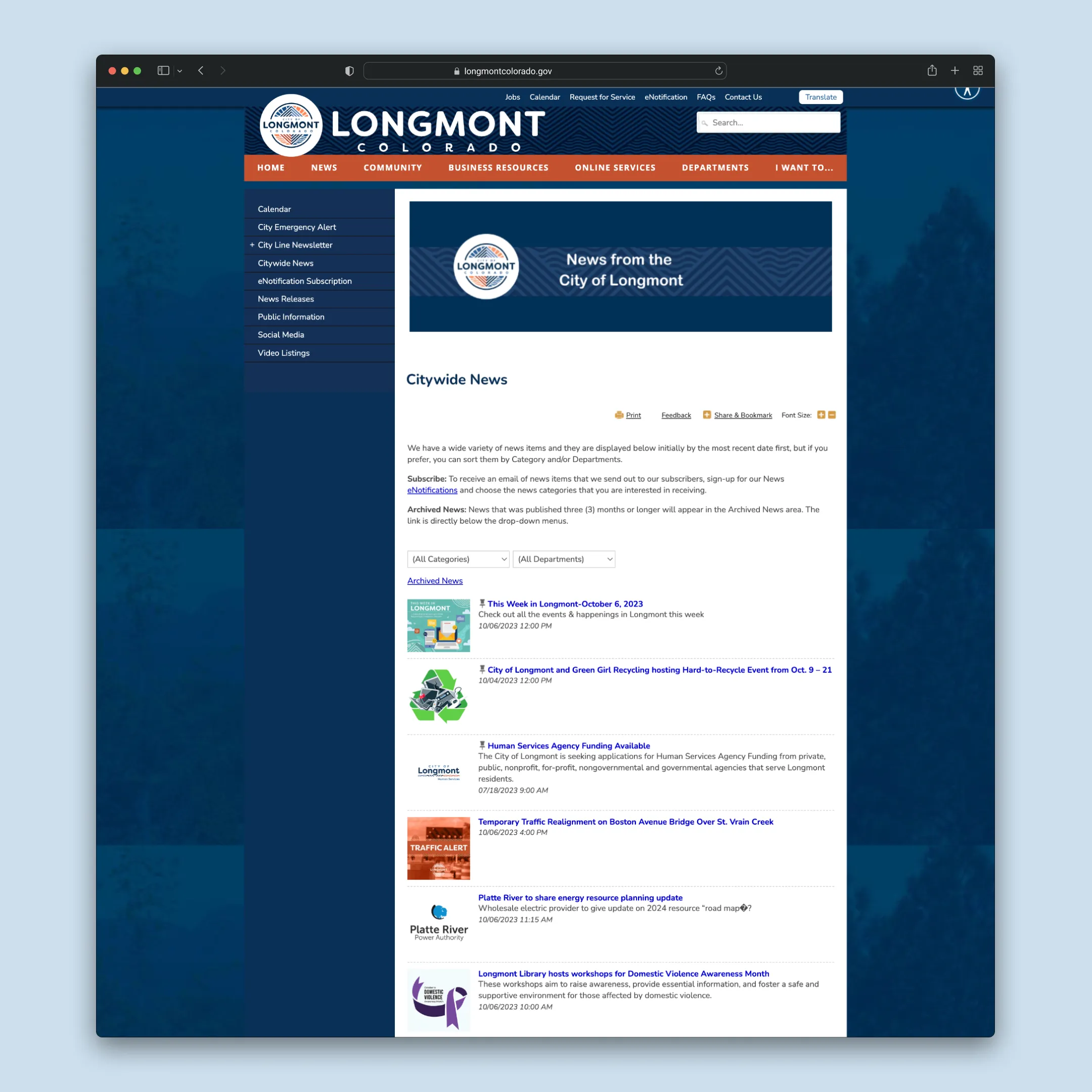 This design approach provided Longmont with the flexibility to manage and update content as they wished, while maintaining a cohesive and user-friendly design throughout the website.