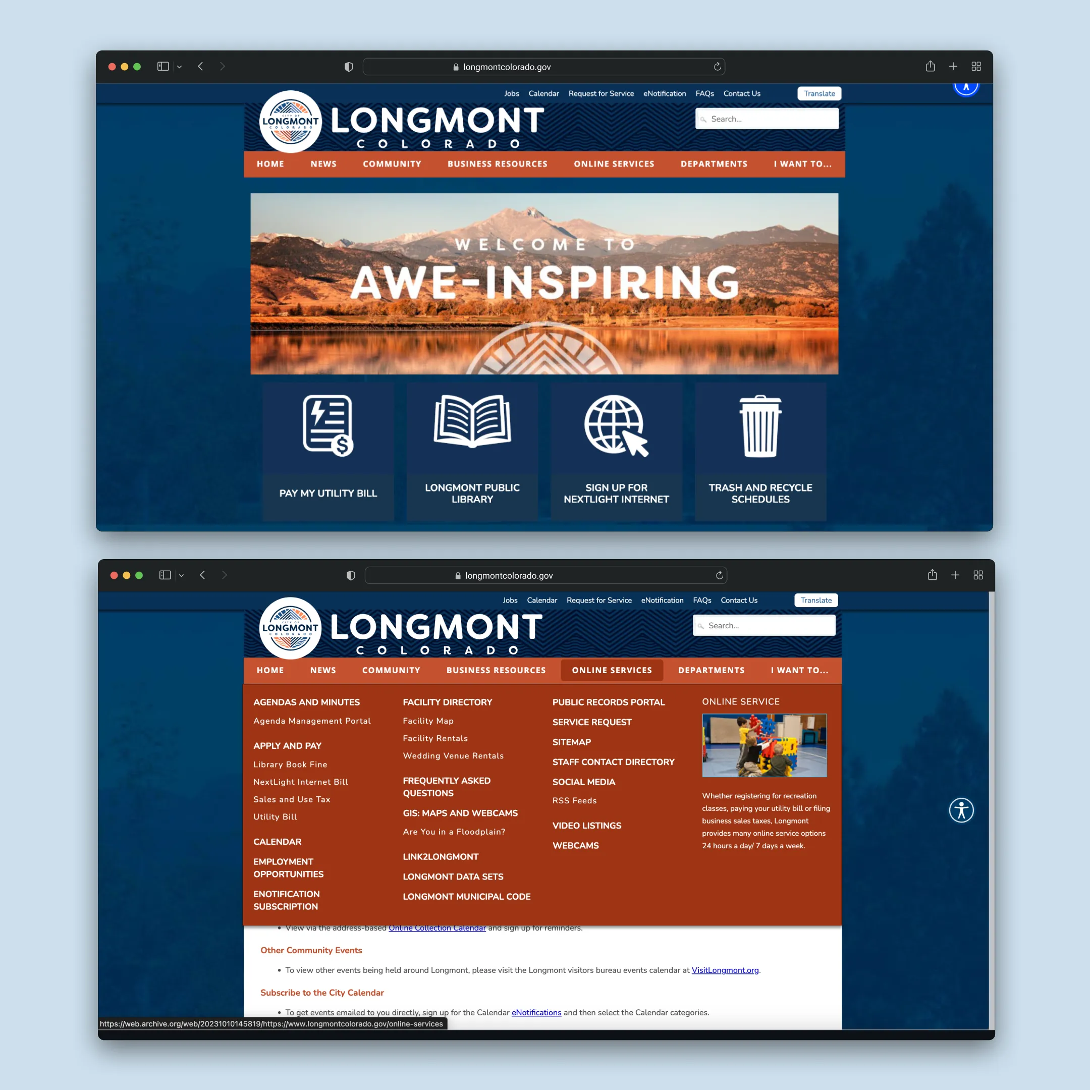 The City of Longmont, Colorado, needed a website overhaul to address outdated navigation, inconsistent content, and accessibility challenges. The old site struggled to serve residents, businesses, and visitors effectively.