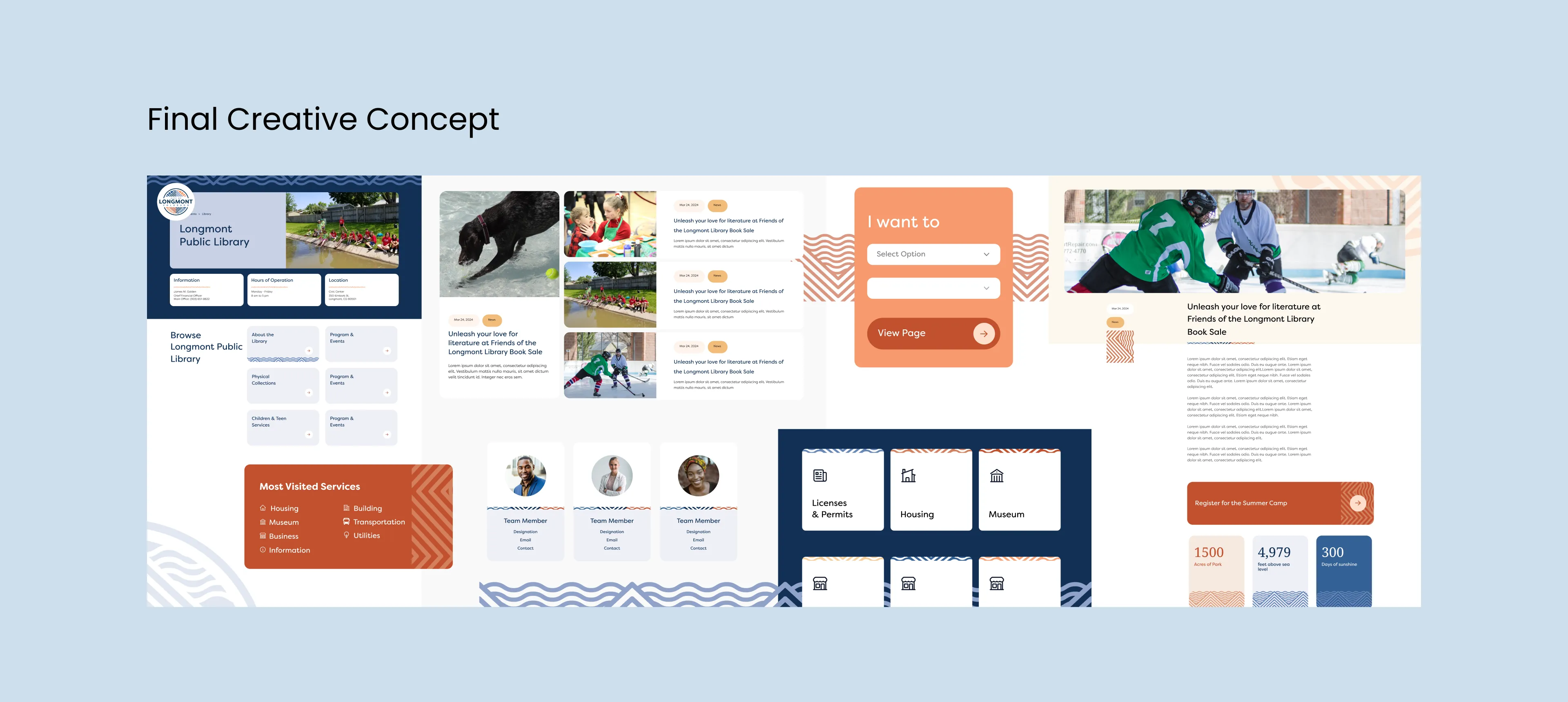 A vibrant, modern design that blended Longmont’s welcoming community spirit with efficient service delivery. It preserved the city’s heritage while enhancing usability through intuitive layouts and bold colors.